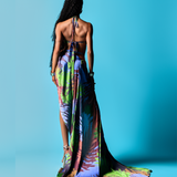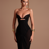 Lime green color with metallic shimmer Mesh fabric with sequin embellishments Body hugging silhouette Structured corset bust with defined cups Thin spaghetti straps Sheer midsection, exposing the waist and stomach High side cut-out Floor-length skirt with a high slit on one leg Flowy hemline...- $1,727.80