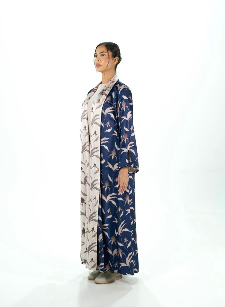 Navy & Cream Floral Silk Abaya