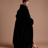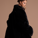 Luxurious black faux fur coat with an oversized silhouette and plush texture. Perfect for evening wear and elevated winter styling!- $689.00