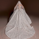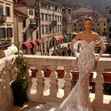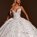 This exquisite wedding dress features delicate French lace and floral embellishments that adorn the mermaid silhouette, adding a touch of romantic elegance to your bridal look. The tight corset accentuates your figure while the open back adds a hint of allure. Every inch of...- $2,872.60