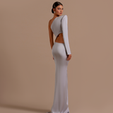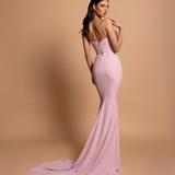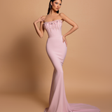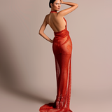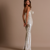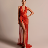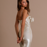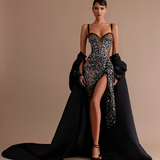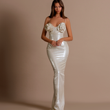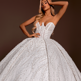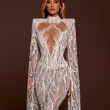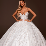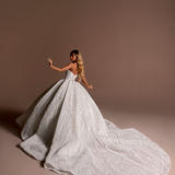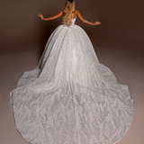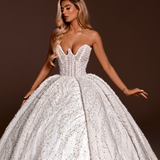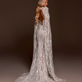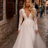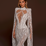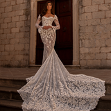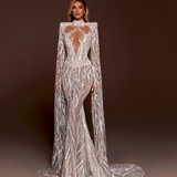 This stunning wedding gown features a tight, form-fitting silhouette that accentuates the bride's figure, with a long train that adds a touch of drama and elegance. The long sleeves are adorned with beautiful details on the hand part, adding a touch of sophistication to...- $2,893.80