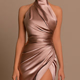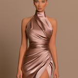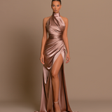 This stunning dress features beautiful draping in the upper, which connects seamlessly with the arms tocreate a flattering silhouette. The lower part is also draped and includes a chic opening on the left sidefor added elegance. The back of the dress is finished with...- $477.00