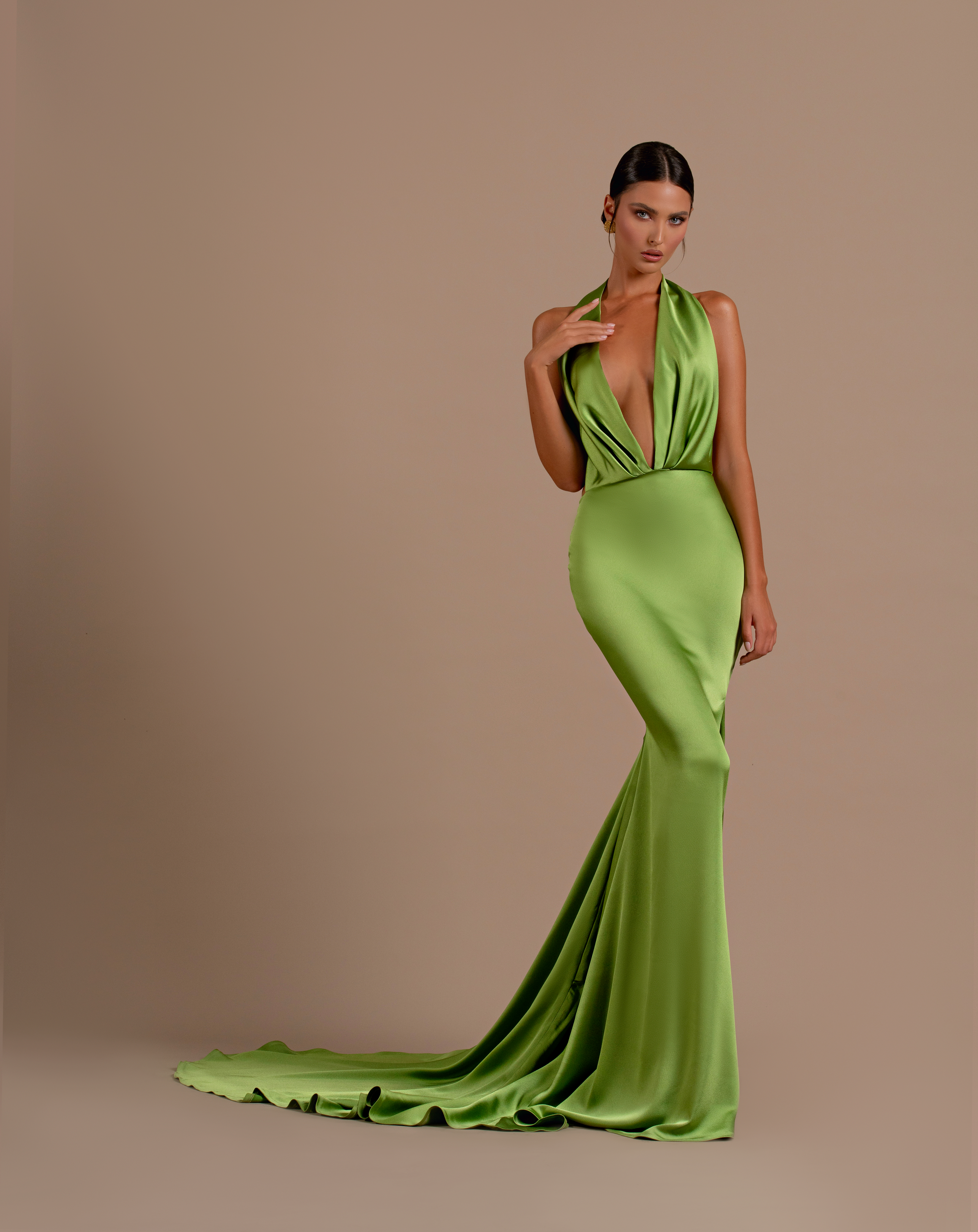 Green Satin Long Dress