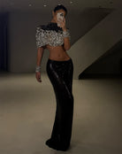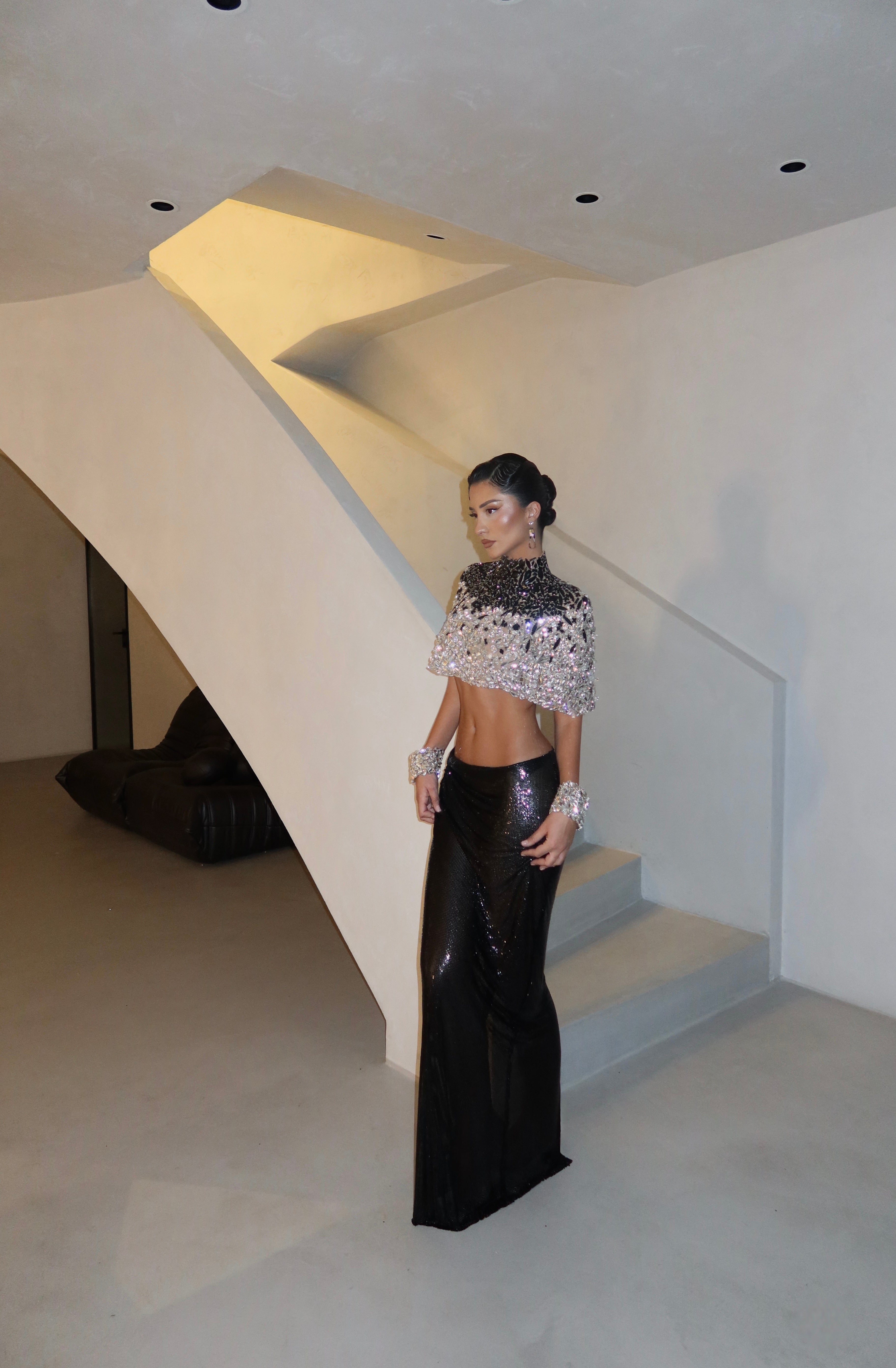 - Start dust, hand-embroidered top glimmers with crystals and intricate beadwork.