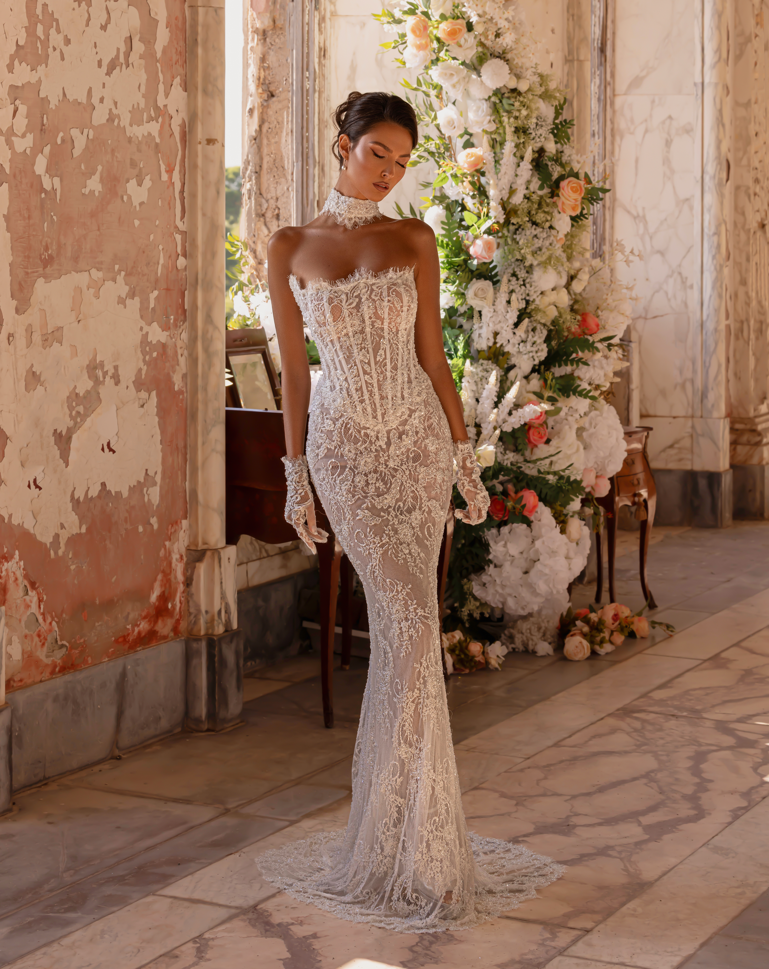 - exudes refined femininity and modern bridal elegance