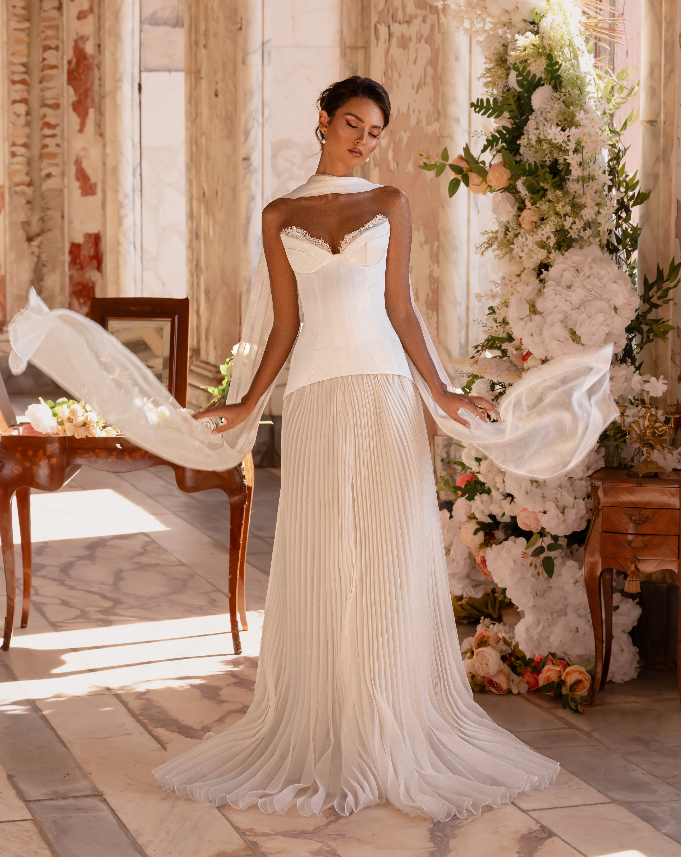 - Pleated chiffon skirt