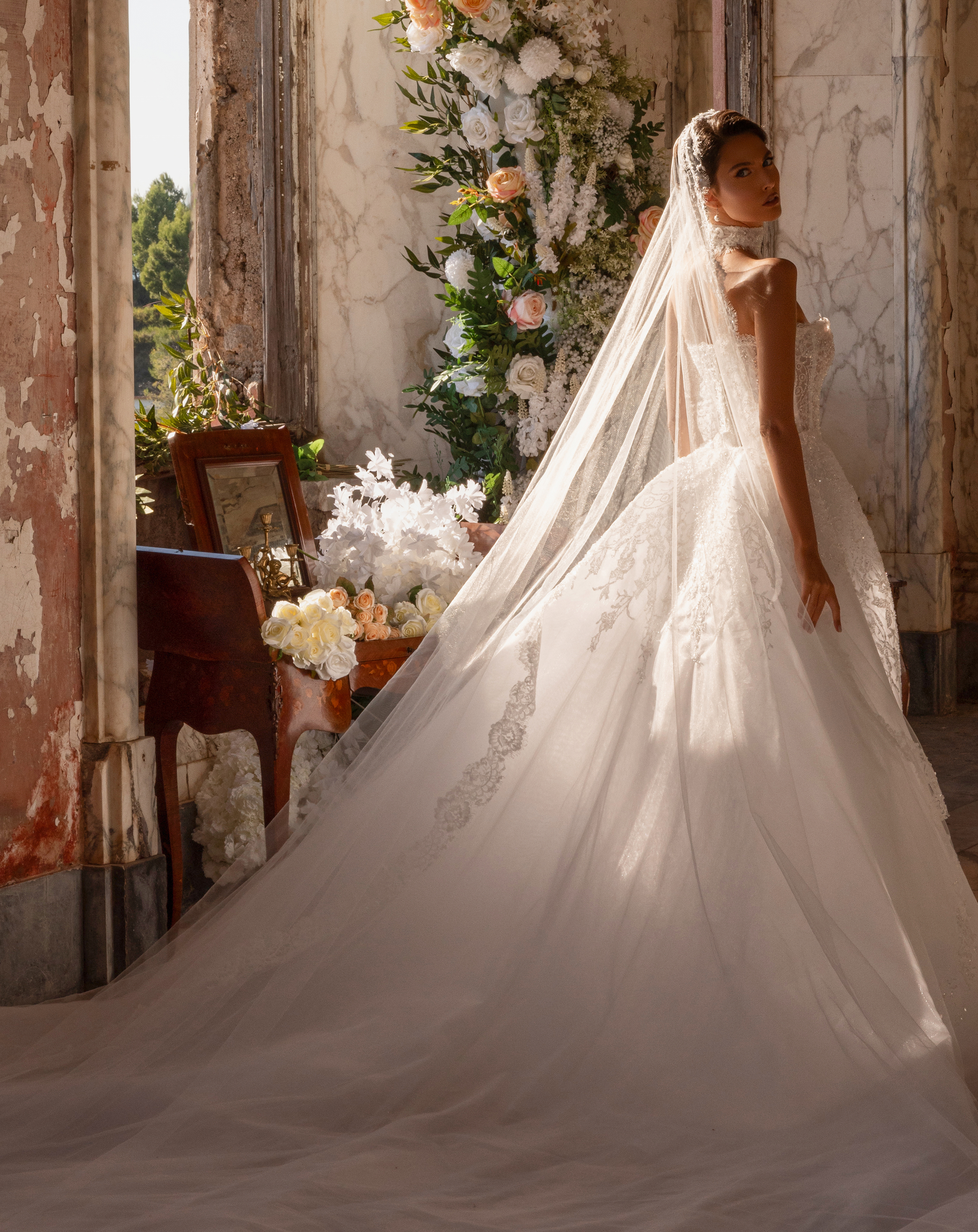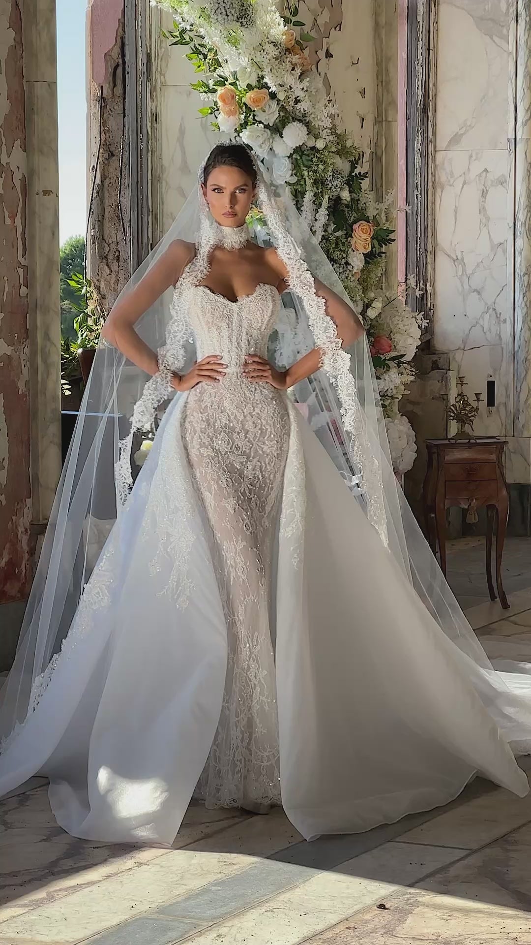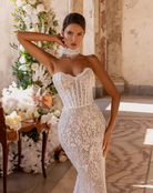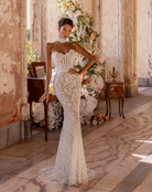 - Fully embroidered strapless sweetheart gown