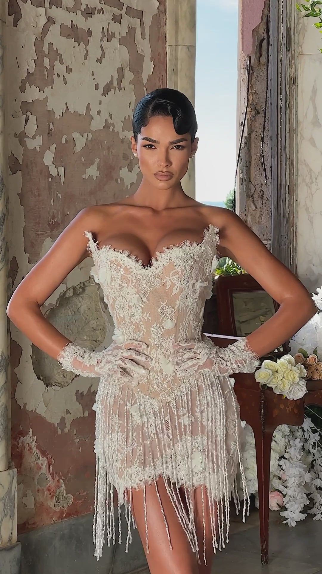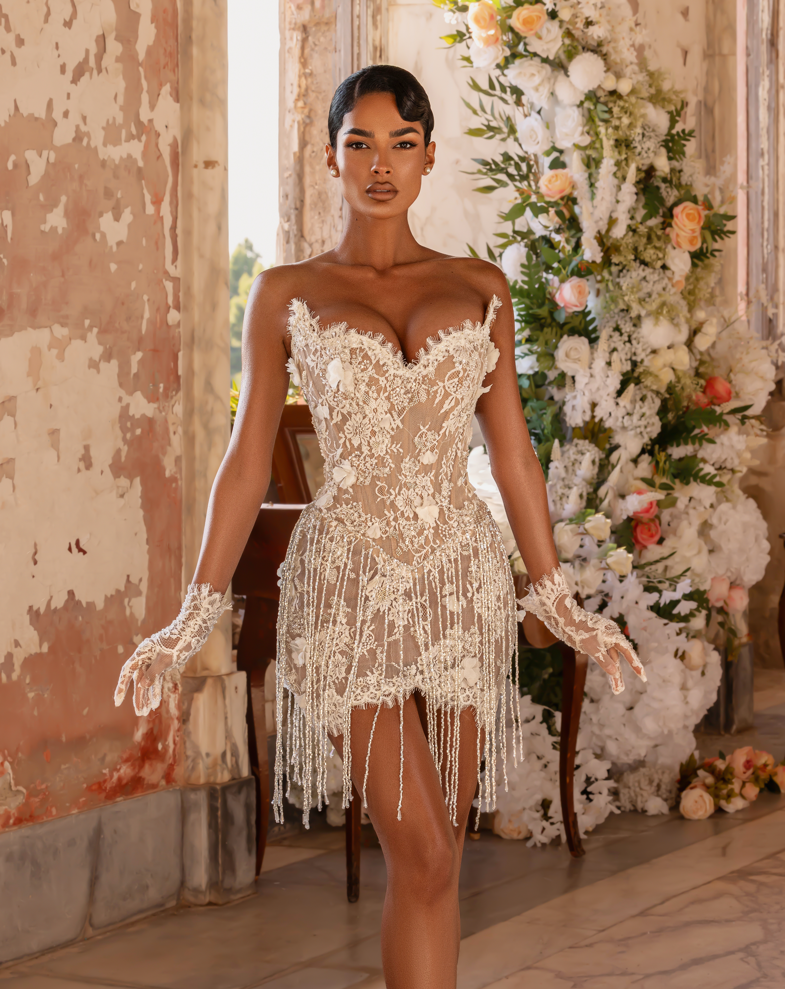 - Playful elegance; modern bridal charm