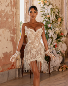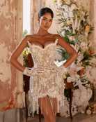 - V-shaped corset with crystal fringe