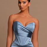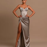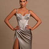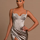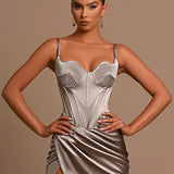 This slate-gray corset dress is a versatile and elegant choice for any occasion. The simple yet chic design features a corset-style bodice with delicate thin straps that accentuate the shoulders and collarbone, while also providing support. The bottom of the dress is straight, creating...- $455.80
