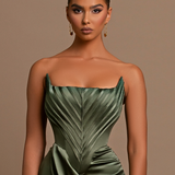 Make a statement in this stunning green corset dress. The corset-style bodice is the star of the show, featuring unique elements that make it truly special. The corset is straight with a peak at the bottom, adding a touch of drama and sophistication. The...- $477.00