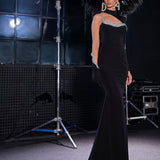 Crystal Elegance Evening Dress with Taffeta Cape