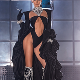 Introducing the "Midnight Diva" ensemble, a bold and daring outfit that exudes confidence and sophistication. The black bodysuit is filled with intricate details, showcasing the intricate craftsmanship and attention to detail. The ensemble is completed with a luxurious silk taffeta cape that adds a...- $678.40