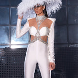 "Crystal Venom" is a fierce and edgy crop top set featuring a black rubber top adorned with sparkling crystals and stones. The long sleeves and gloves add a touch of elegance, while the pants with slits and rubber material add a daring edge to...- $636.00