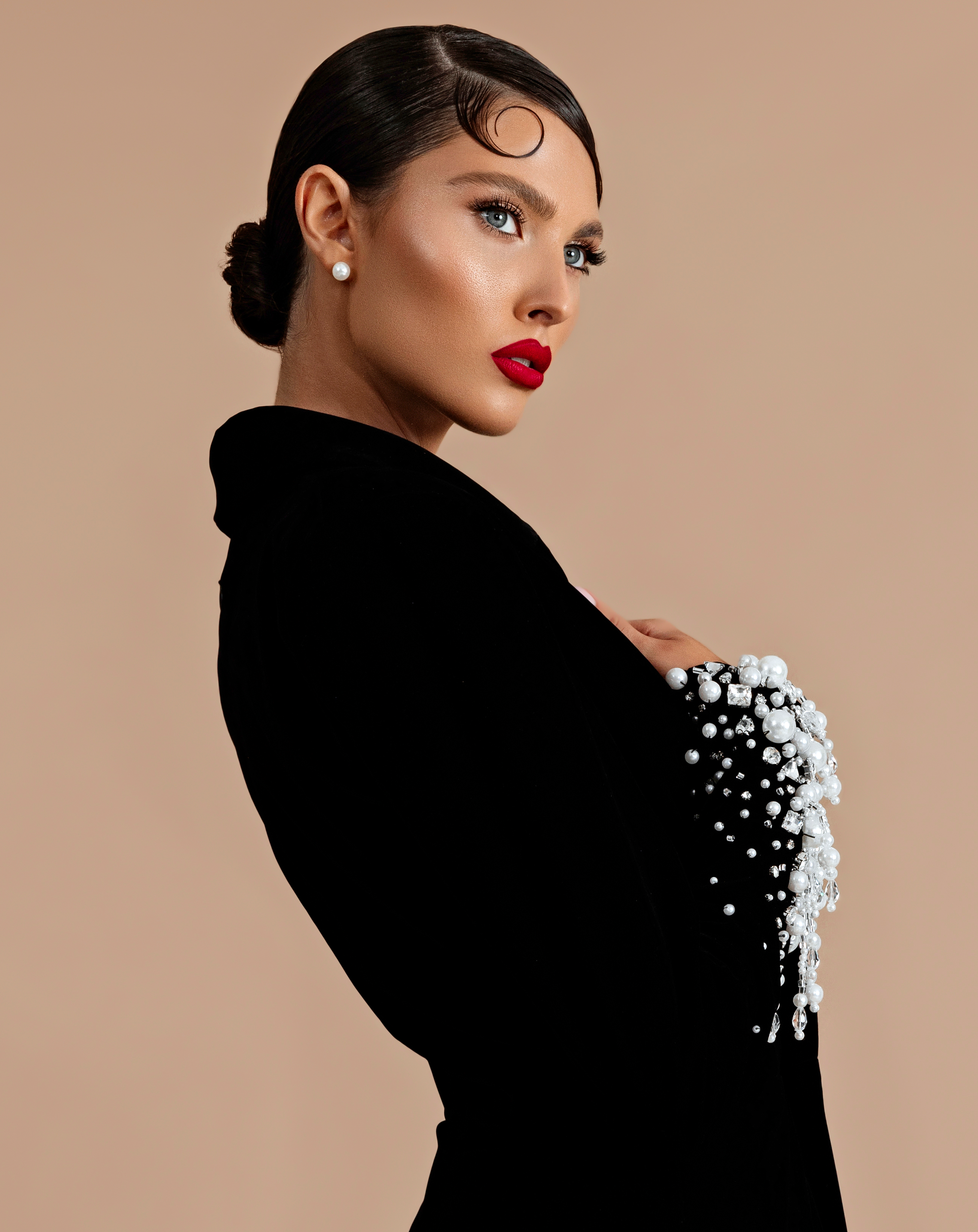 Velvet strapless gown