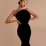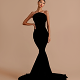 Strapless Design on the top of the gown Fitted Waist Mermaid Silhouette Floor length Model is wearing a size S- $1,060.00