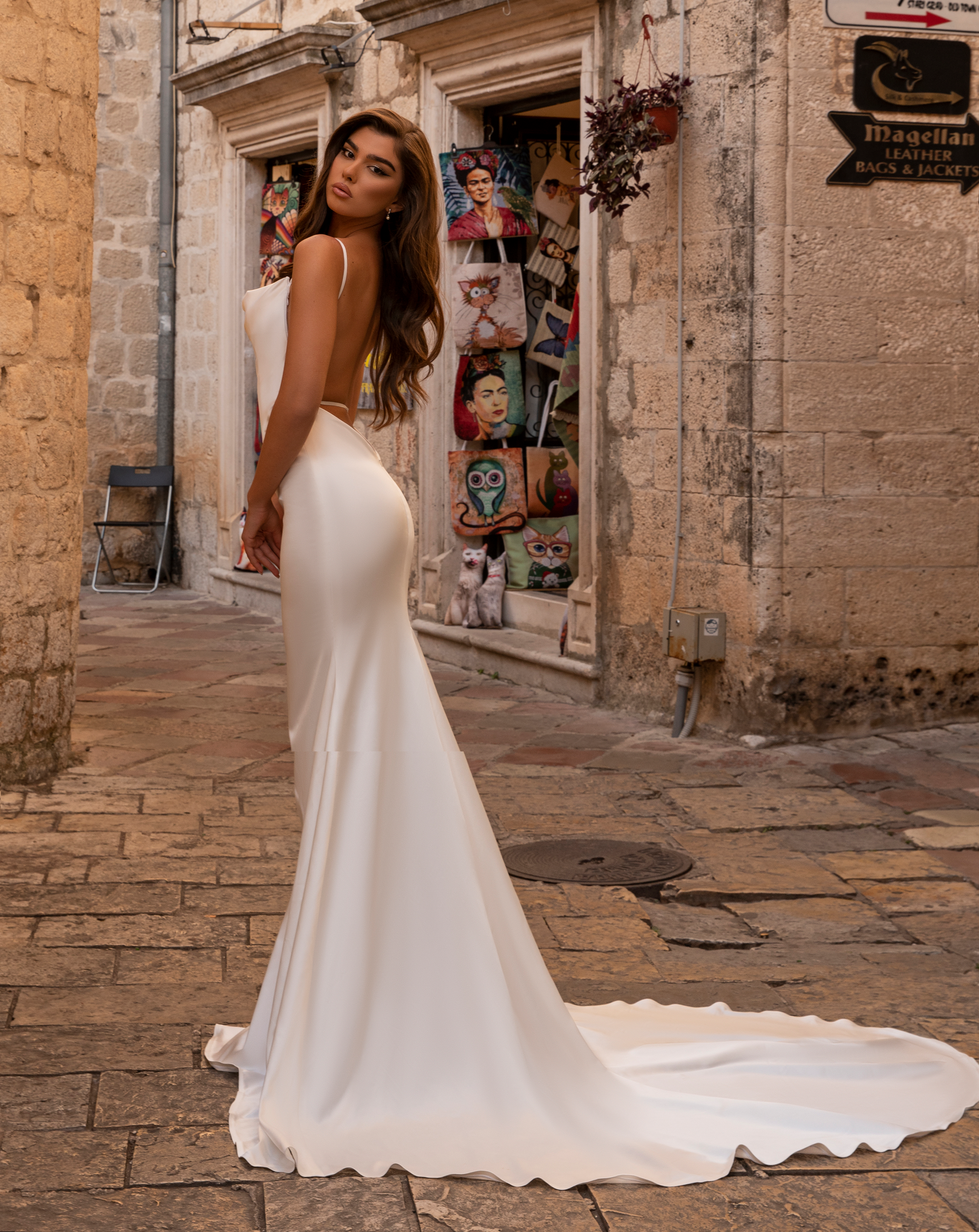 This backless satin wedding dress is the epitome of modern elegance and sophistication. The dress features a stunning open back design that is sure to turn heads and leave a lasting impression. The satin material is soft and silky, draping gracefully over your curves and creating a stunning and feminine silhouette. The tight corset on the upper part of the dress accentuates your figure, creating a flattering and alluring effect that is both modern and timeless. The long train adds an extra layer of grandeur and majesty, creating a breathtaking and unforgettable effect as you walk down the aisle. This dress is perfect for any type of wedding, whether you're having a grand celebration or an intimate ceremony. With its modern and chic style, this dress is perfect for any bride who wants to feel confident and beautiful on her special day.