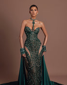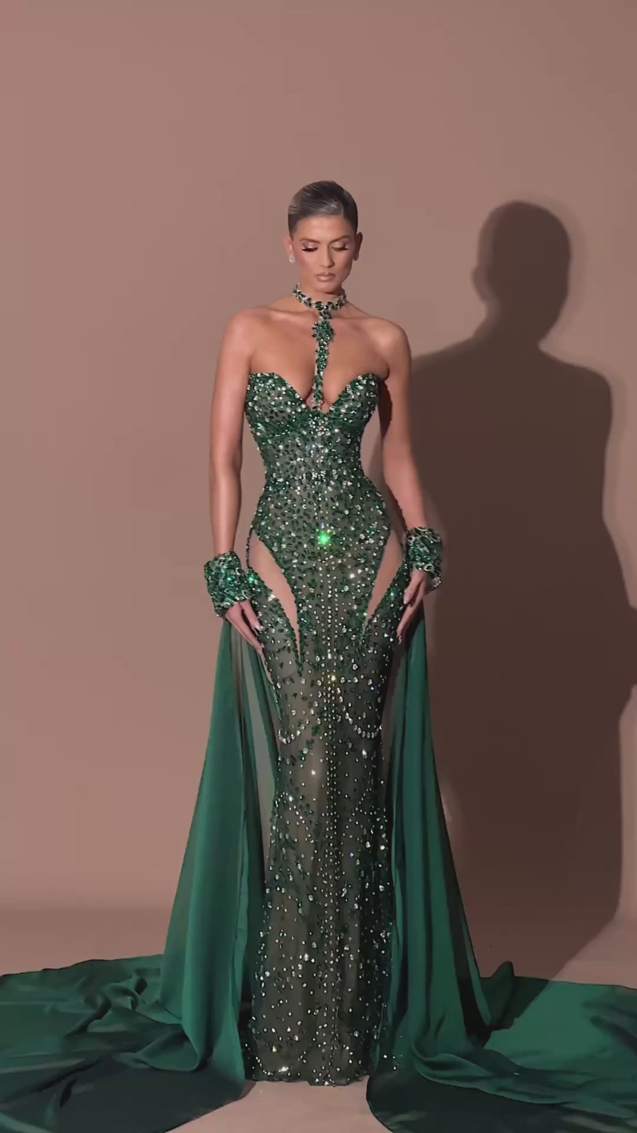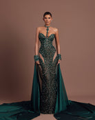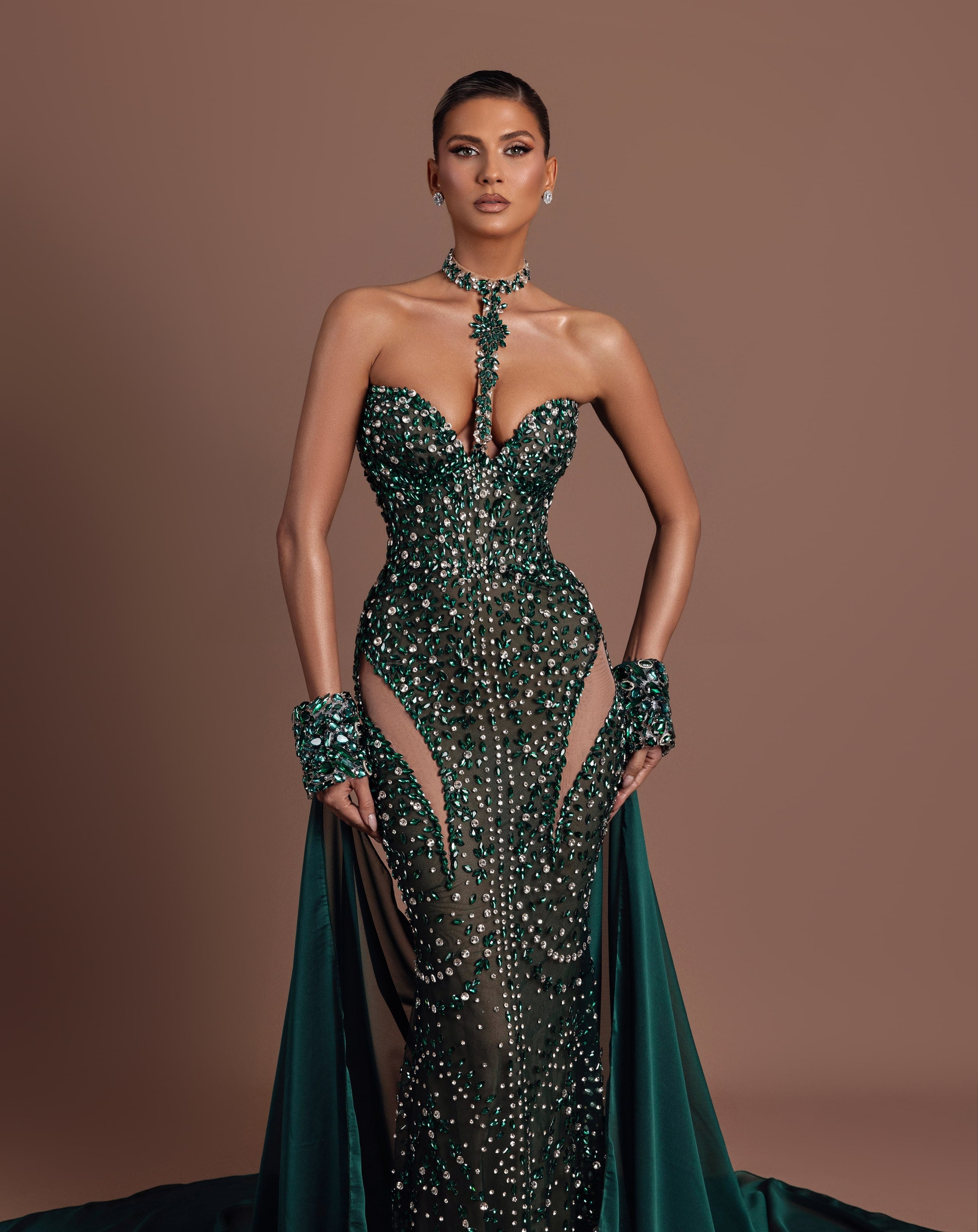 - Emerald green crystal embroidery