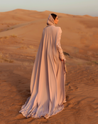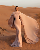 Blush Fitted Dress with Built-In Hijab and Draped Embellished Cape