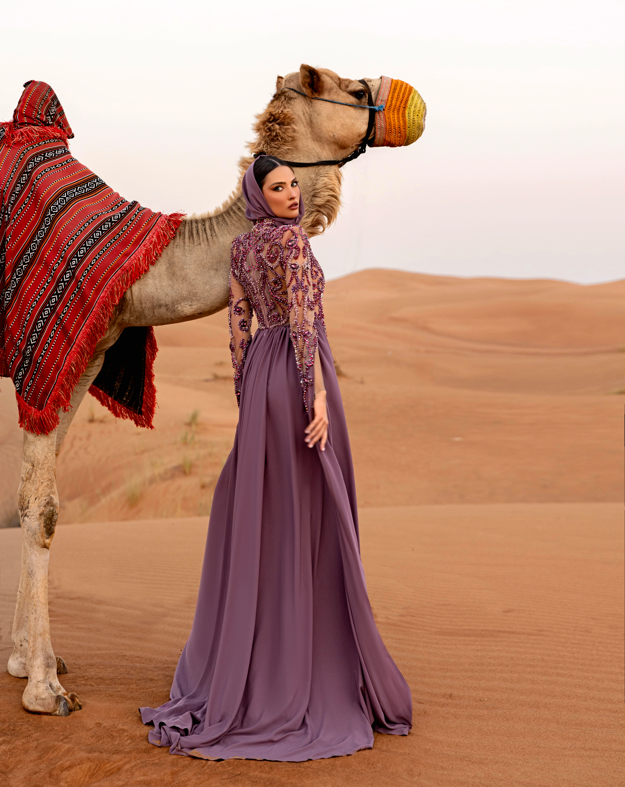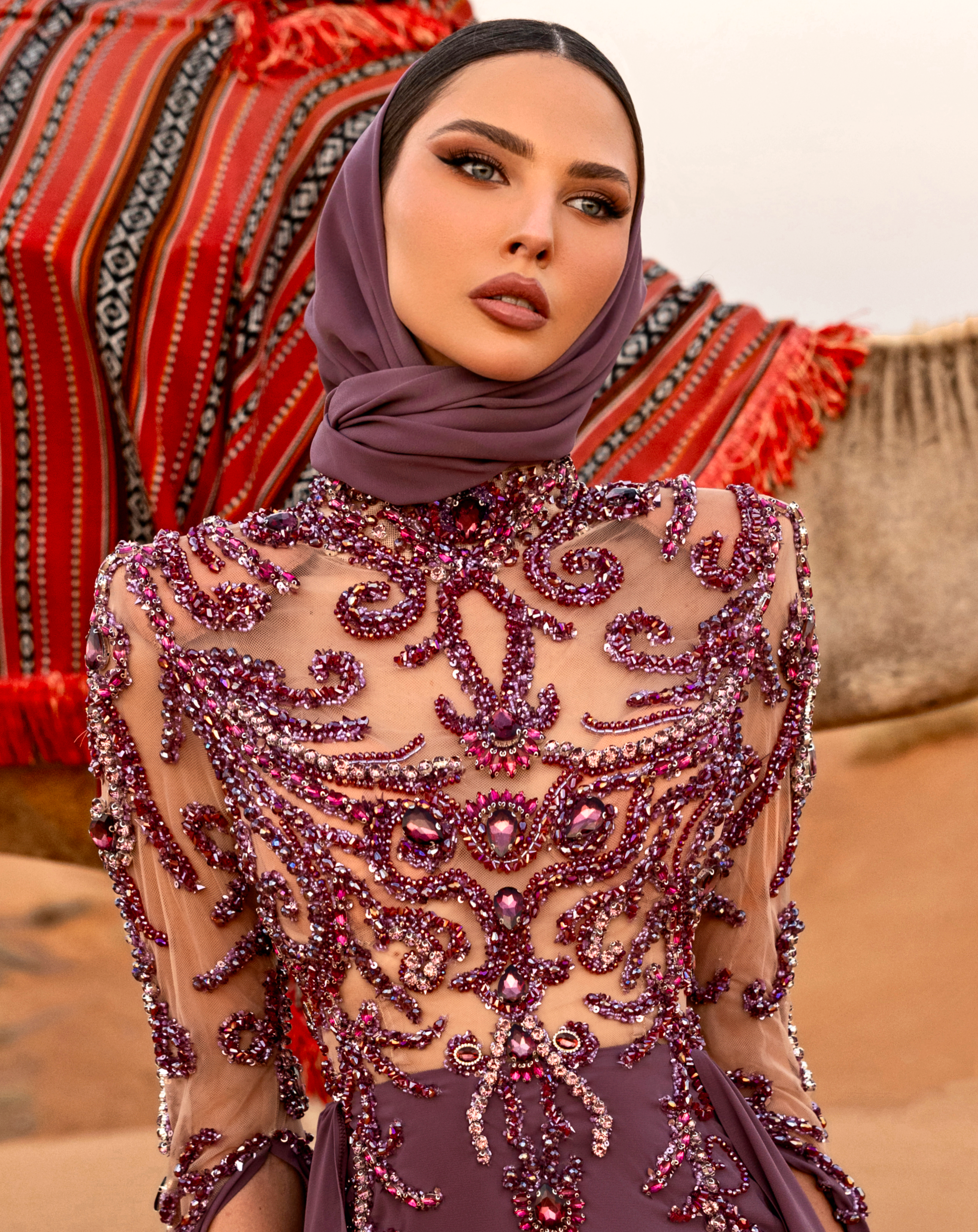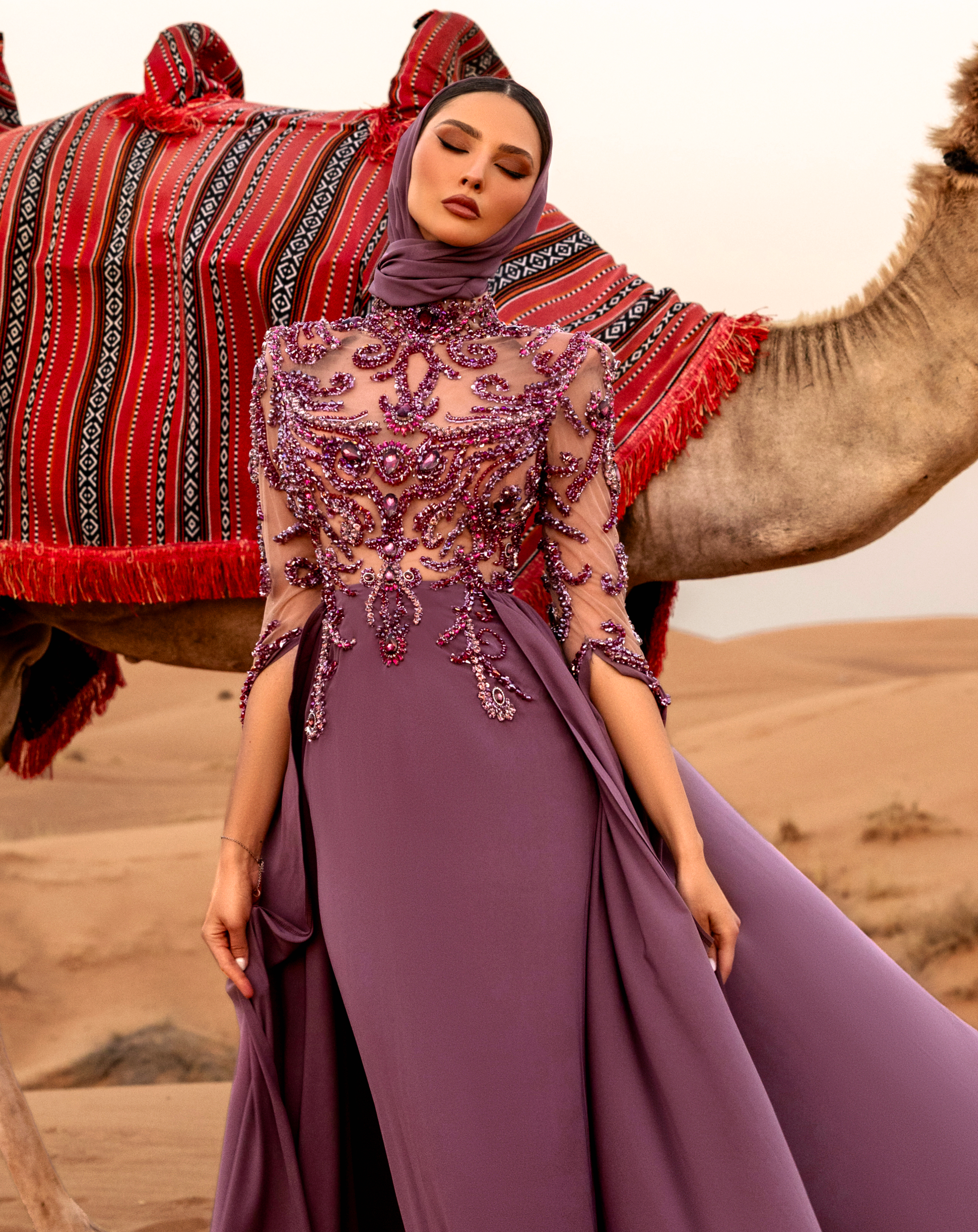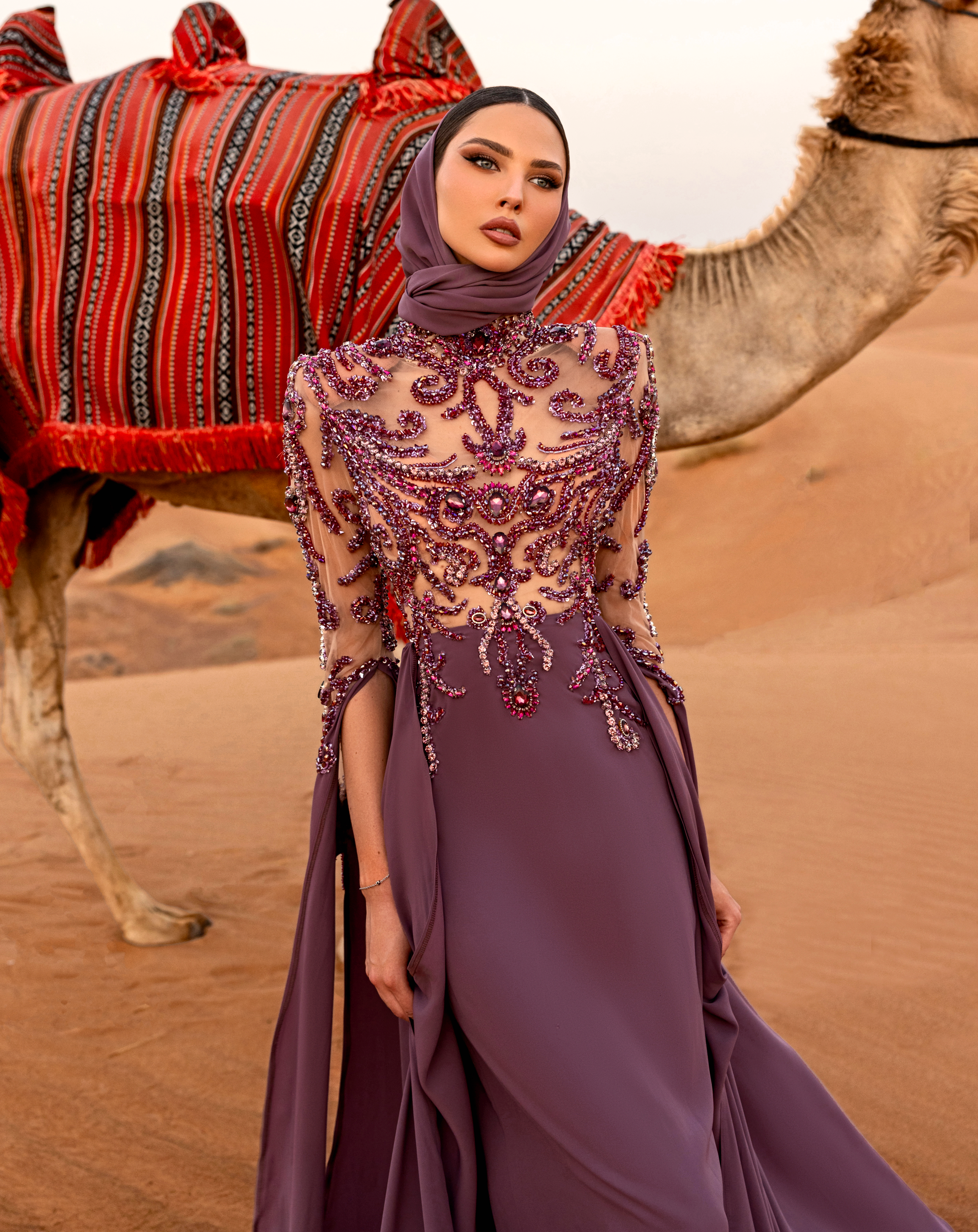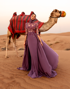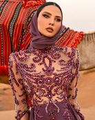 Mauve Embellished Gown with Hijab and Layered Chiffon Skirt