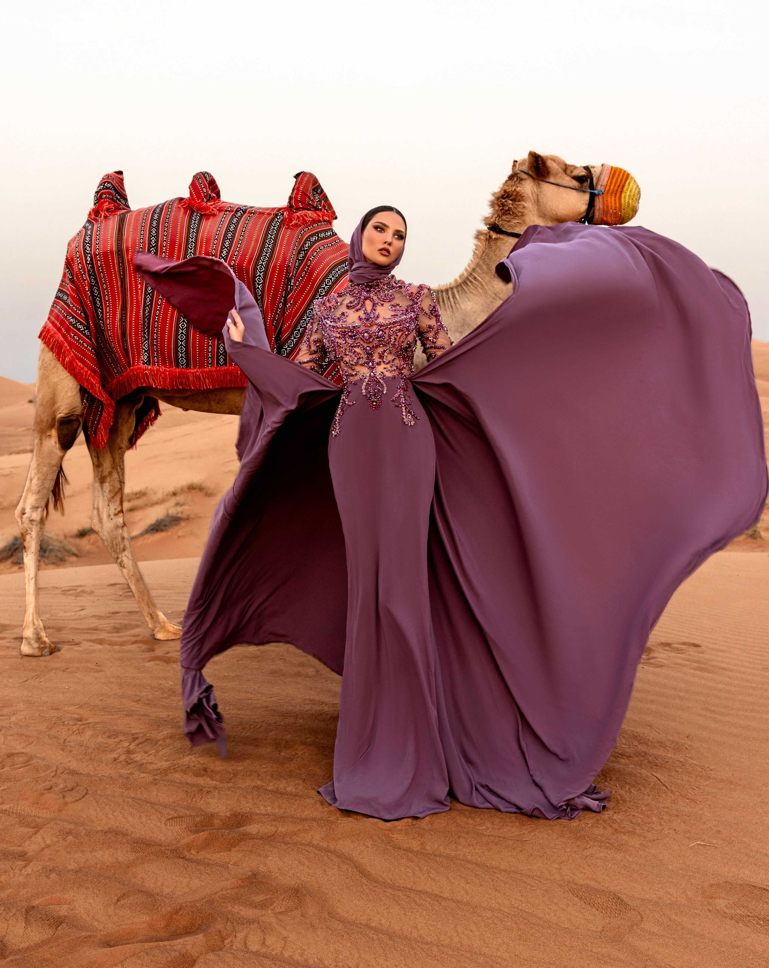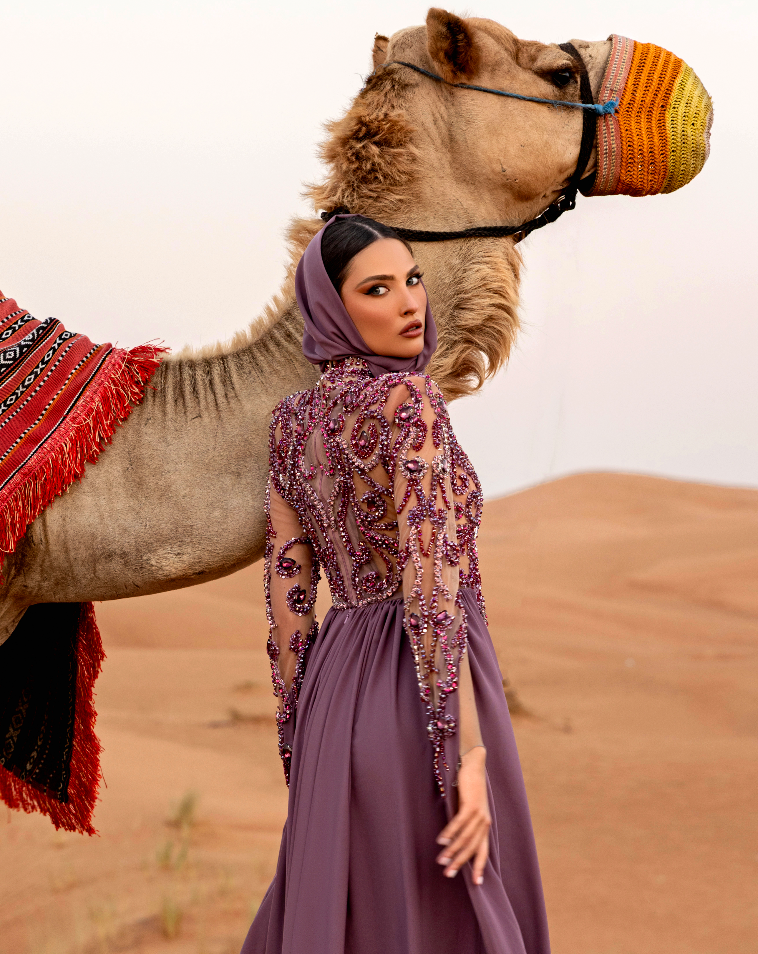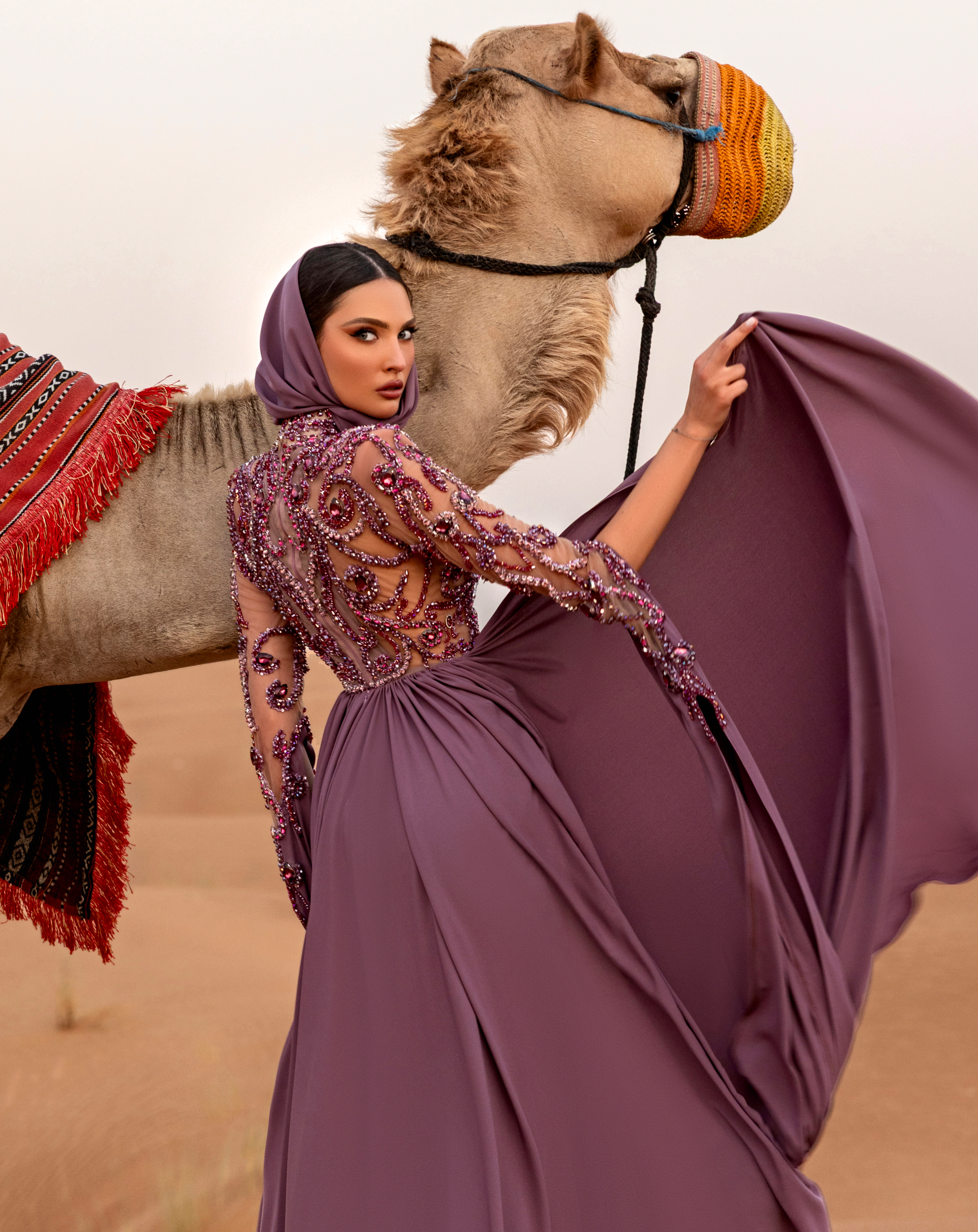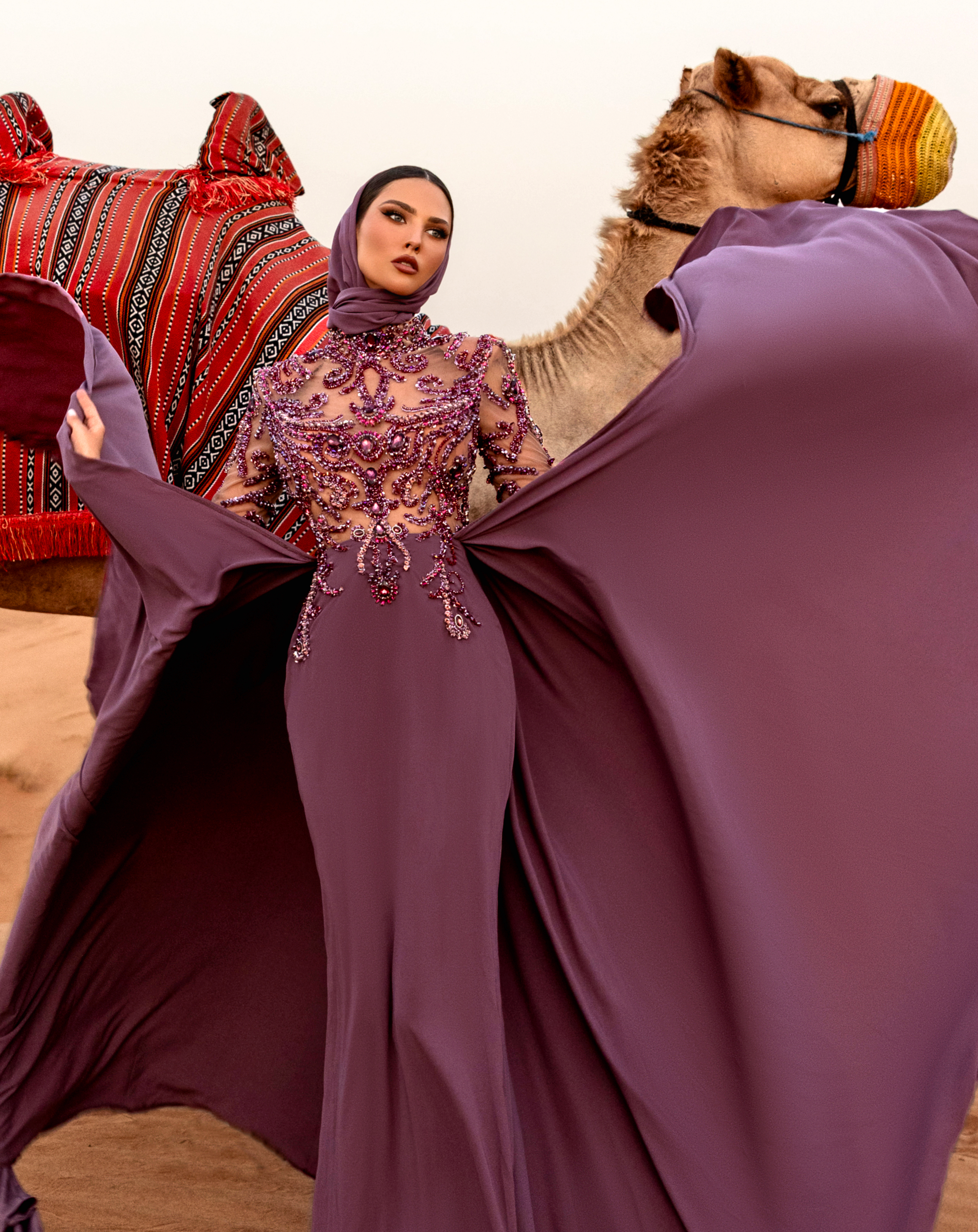 Mauve Embellished Gown with Hijab and Layered Chiffon Skirt