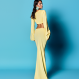 Two-piece mermaid gown Triangle bikini-style top fully embellished with oversized shimmering sequins High waisted skirt cascading into a dramatic mermaid silhouette Sequins layered in different sizes for a dynamic, reflective effect Floor sweeping hemline with a subtle train Model is wearing a size...- $964.60