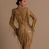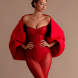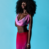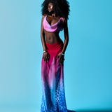 Two piece set Cowl neckline with spaghetti straps Open back with a delicate floral embellishment at the tie closure Flowy skirt Model is wearing a size S- $196.10