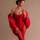Two-piece set featuring a starfish embellished bandeau top and a mini skirt Handcrafted beadwork with pearls and crystals Adjustable lace-up back on the top Form-fitting mini skirt Starfish appliqué on both pieces Model is wearing a size S- From $424.00