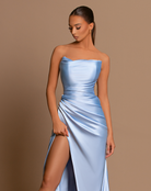This stunning dress boasts a captivating design that is both elegant and alluring. The upper part of the dress features a corset-style design that flatters and enhances the silhouette, creating a striking and feminine look. The lower part of the dress has a draping effect that adds a touch of fluidity and gracefulness to the overall design.