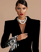 - Handmade beads and fringes on the bottom of the dress and on the sleeves