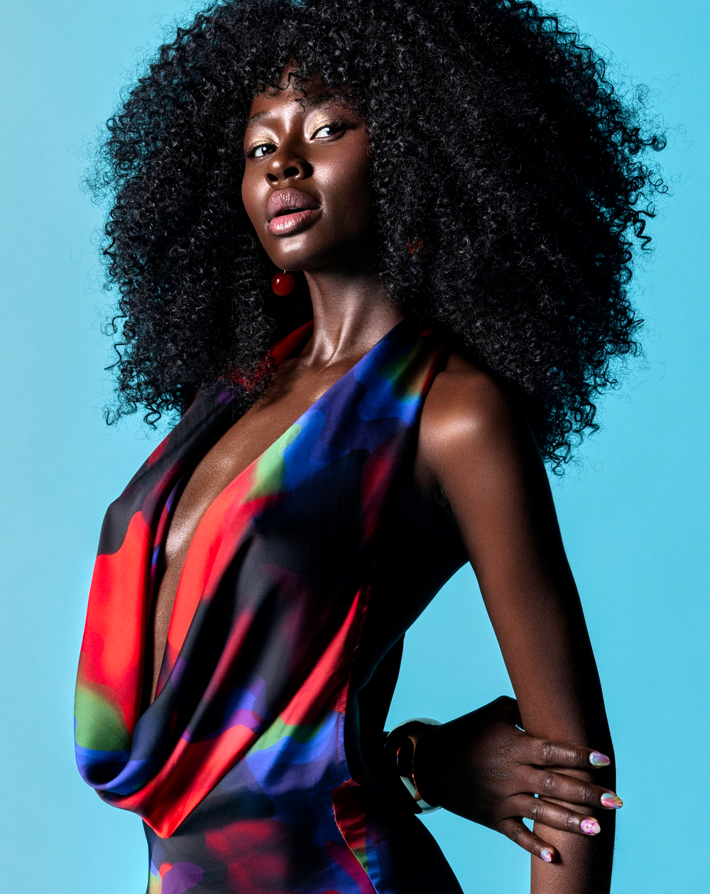 Rich hues of red, black, and blue blend in an abstract, watercolor print