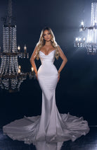 This beautiful wedding dress is designed to make you feel like a true queen on your special day. Made of smooth and silky satin material, the dress exudes a clean and classic look that is both timeless and elegant. The tight corset highlights your curves, while the mermaid shape accentuates your figure with a graceful and feminine silhouette. The dress features a breathtakingly long train that adds a touch of drama and grandeur to your bridal ensemble. With its sleek and sophisticated design, this dress is perfect for any bride who wants to look and feel stunningly beautiful on her wedding day.