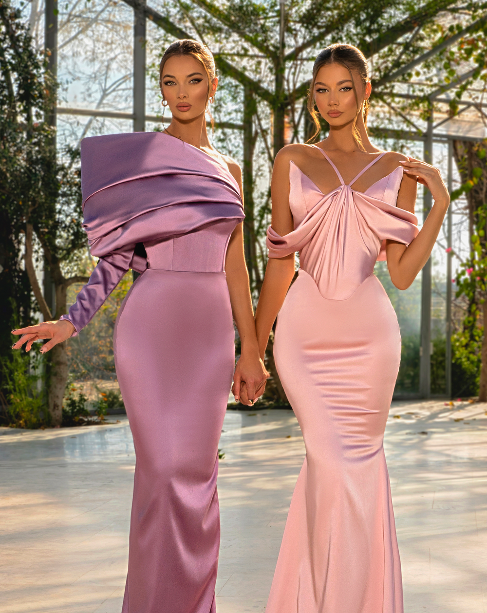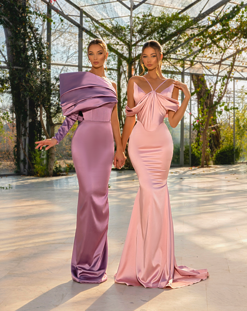 This stunning baby pink satin dress is a true showstopper, with shapes and cuts that are sure to turn heads. The dress features a flattering corset design, with the part of the ties attached to the part of the scarves, adding a touch of elegance and sophistication. The lower part of the dress is straight and features a mermaid tail, creating a beautiful and graceful silhouette that accentuates the curves of the body. Perfect for any formal occasion, this dress is a must-have for those looking to make a statement.